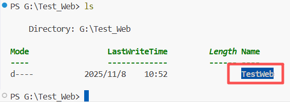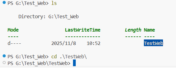 可以先在你想放置工程文件夹的位置先创建好文件夹,比如G:\Test_Web(G盘下创建一个名为Test_Web的文件夹),然后在VScode中打开这个文件夹然后打开终端