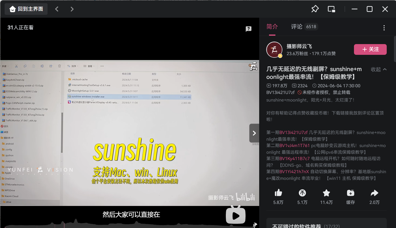 参考视频教程: 几乎无延迟的无线副屏?sunshine+moonlight最强串流!【保姆级教学】
