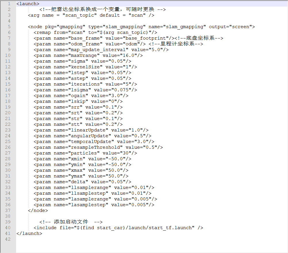 gmap_test.launch中按如下图编写(建议直接复制),其中gmap_test是文件名称,自定义即可