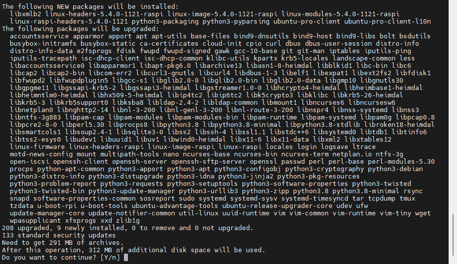 如果是sudo apt upgrade,此时需要输入y/Y