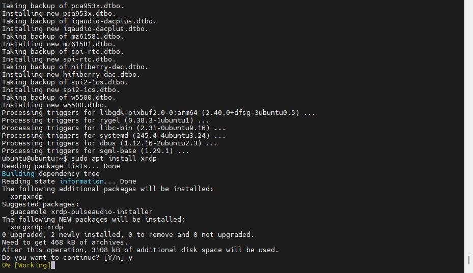 如果是sudo apt install xrdp,此时需要输入y/Y