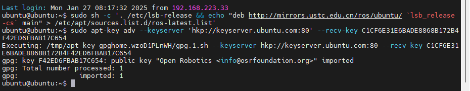 sudo sh -c '. /etc/lsb-release && echo "deb http://mirrors.ustc.edu.cn/ros/ubuntu/ `lsb_release -cs` main" > /etc/apt/sources.list.d/ros-latest.list'