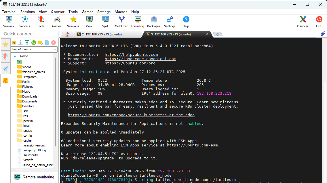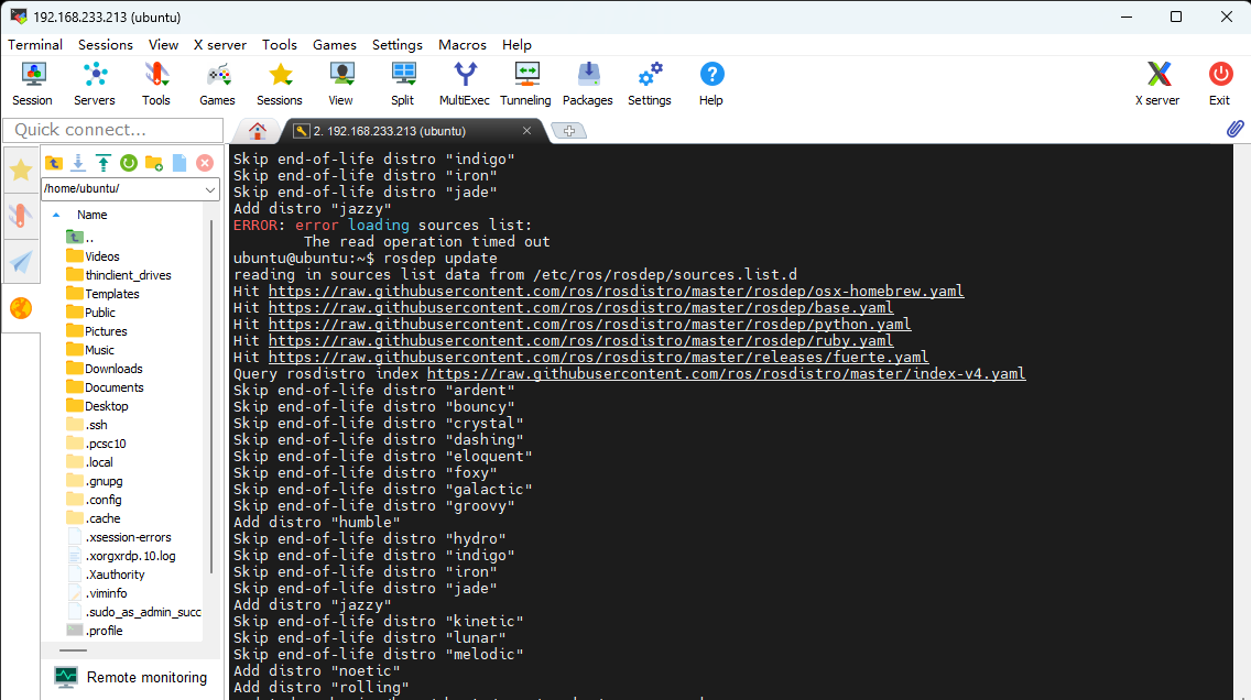 后面安装ROS的操作还是用MobaXterm操作,远程桌面连接我这里用着感觉延迟挺高,看自己情况吧