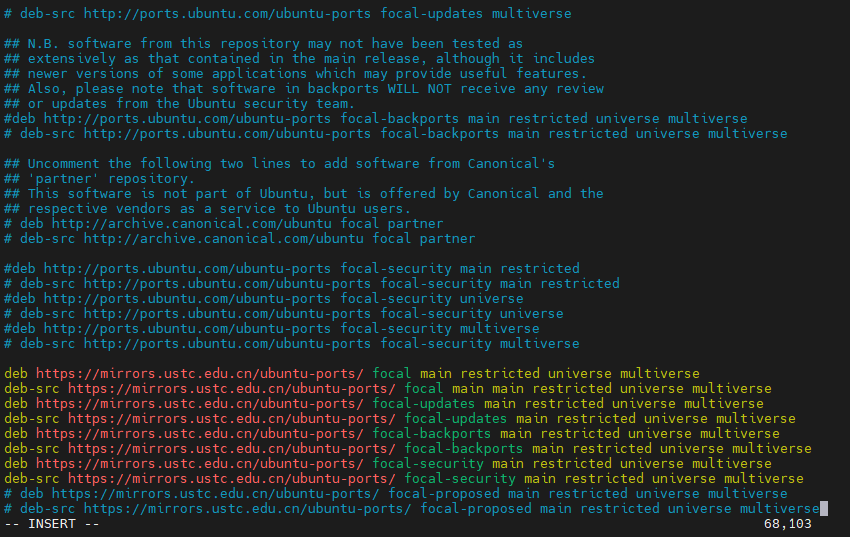 deb https://mirrors.ustc.edu.cn/ubuntu-ports/ focal-updates main restricted universe multiverse