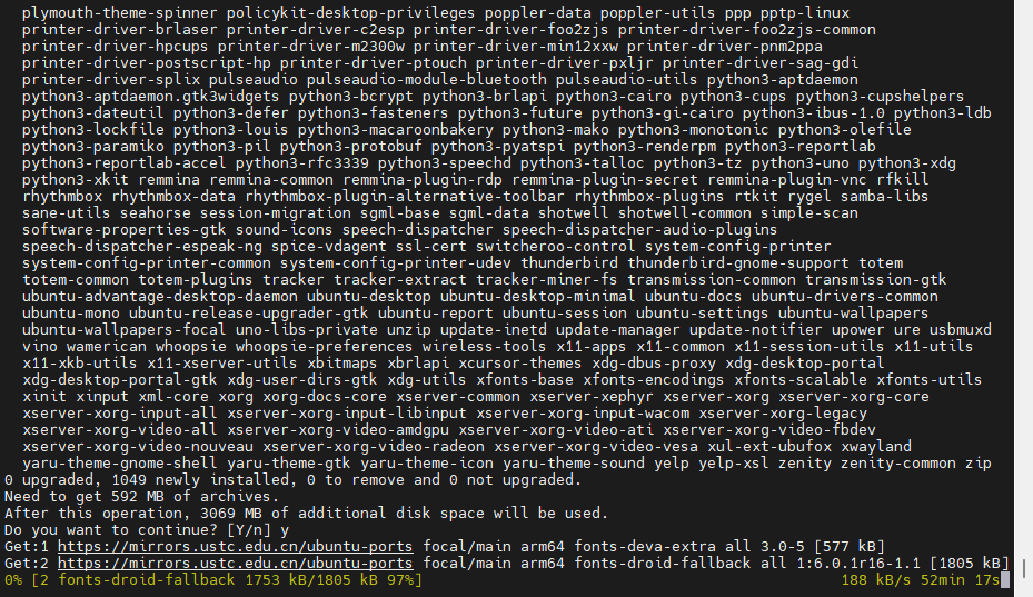 如果是sudo apt install ubuntu-desktop,此时需要输入y/Y