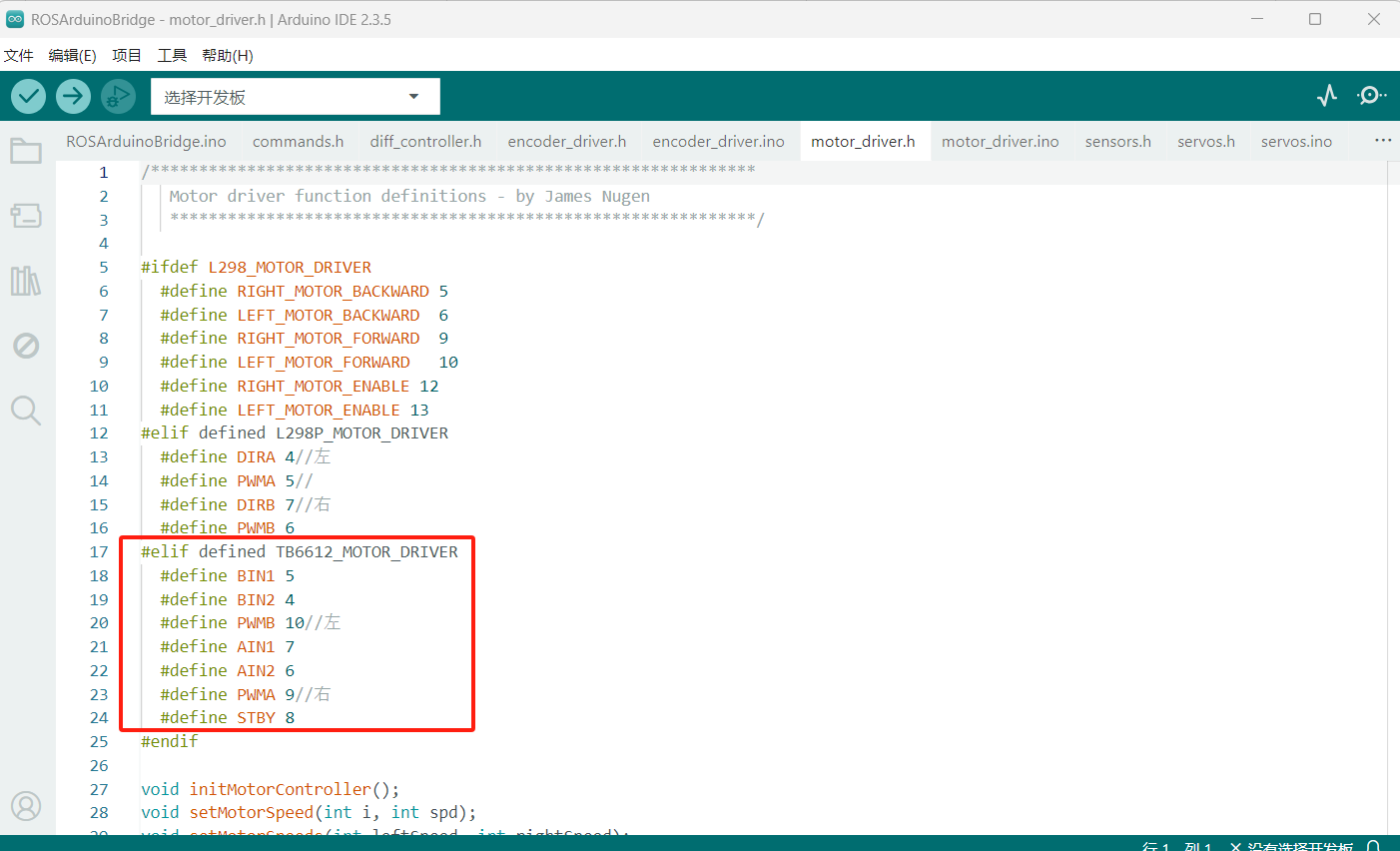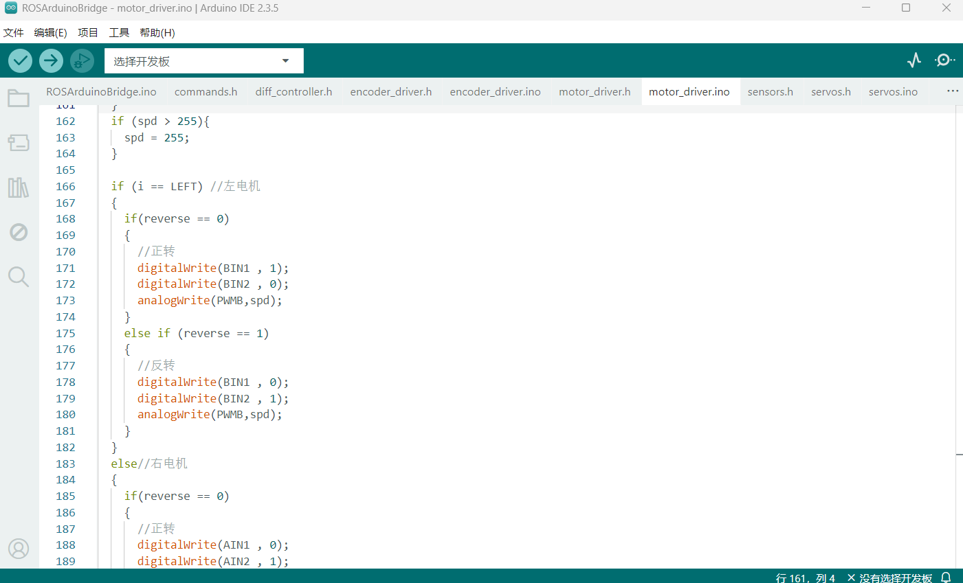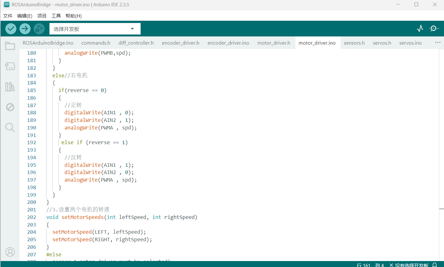 在motor_driver.ino中添加如下部分代码(建议直接查看我的文件)