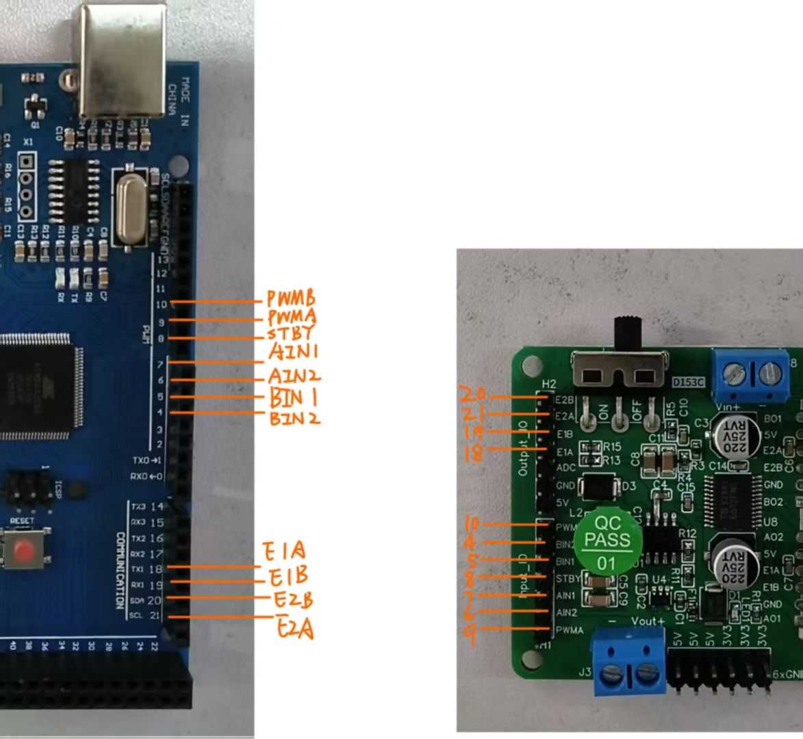 其中TB6612的STBY可以直接接在5V上,即默认使能电机,不通过程序控制电机