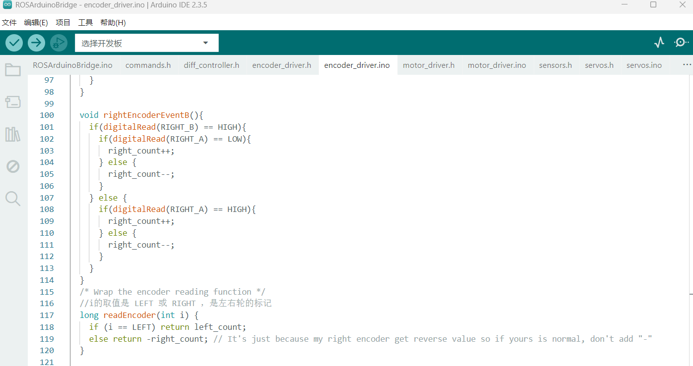 在encoder_driver.ino中添加如下部分代码(建议直接查看我的文件)