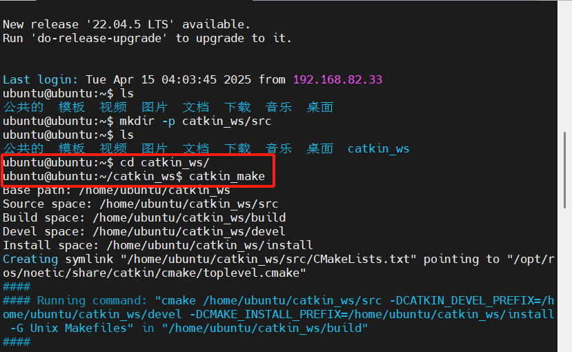 这里以catkin_ws为例,工作空间必须需要一个名为src的子文件夹